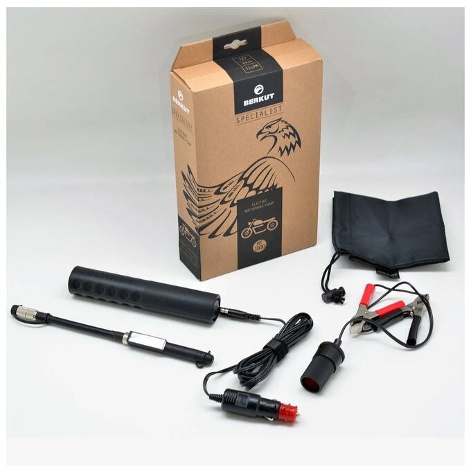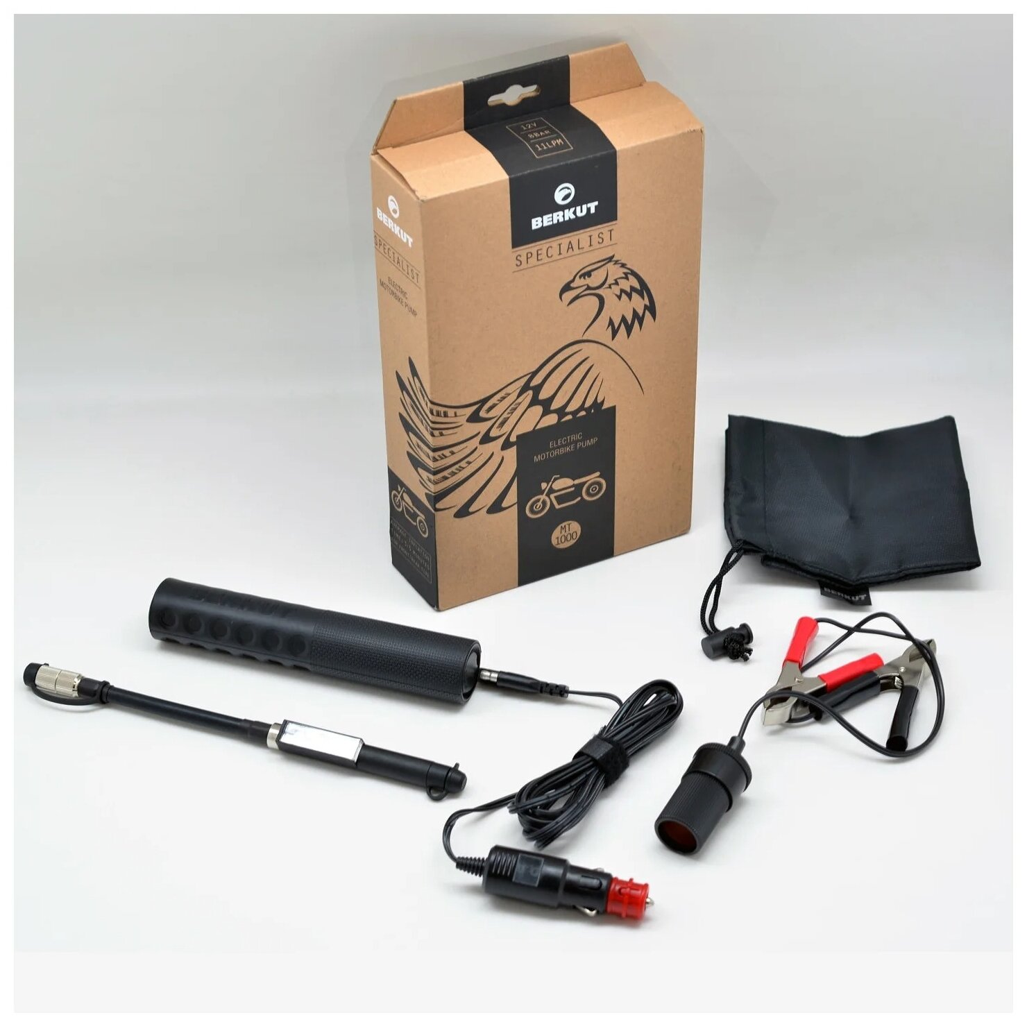 максимальный ток потребления — 6 А; мощность потребления — 70 Вт; температурный диапазон — от -20°C до + 45°C; погрешность манометра — ± 0,3 бар (± 5 psi); длина шланга — 250 мм; длина кабеля питания — 2,6 м; вес (устройства/комплекта) — 0.26 кг/ 0.56 кг; Комплектация: BERKUT MT-1000 — электрический насос для мототехники, шланг-удлинитель с манометром и наконечником-адаптером, кабель питания со штекером 12V, адаптер для подключения к клеммам АКБ, сумка-чехол для хранения и переноски, руководство по эксплуатации,