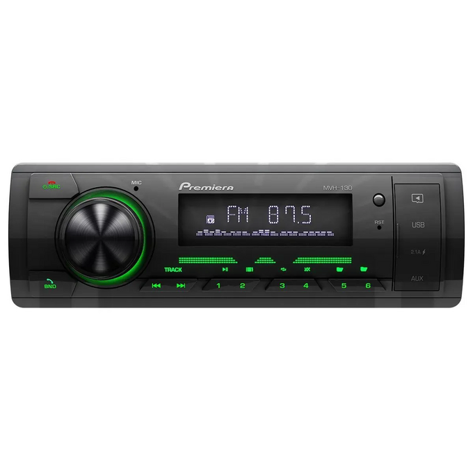 Premiera MVH-130 FM/ SD/ USB ресивер с поддержкой беспроводной технологии Bluetooth — это современная и многофункциональная автомагнитола стандартного установочного размера 1DIN, которая при этом имеет минимальную монтажную глубину — всего 35 мм.