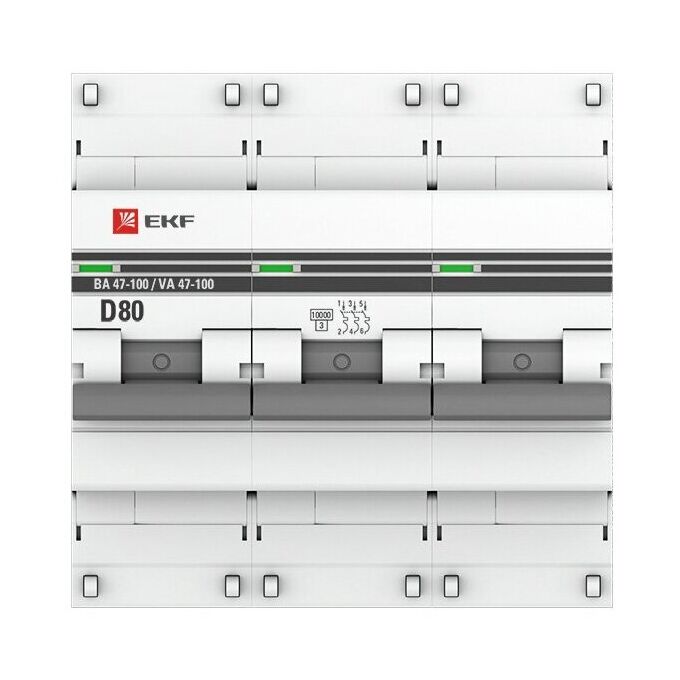 Автоматический выключатель EKF PROxima ВА 47-100 (mcb47100-3-80D-pro) 80А (D) 10kA 3P