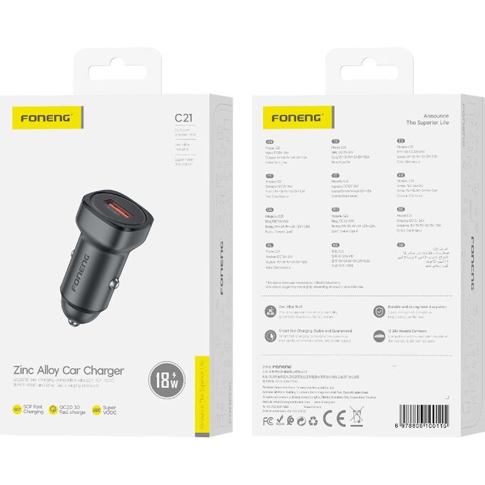 Автомобильное зарядное устройство (АЗУ) Foneng C21 USB 3.0 18W (Dark Gray)