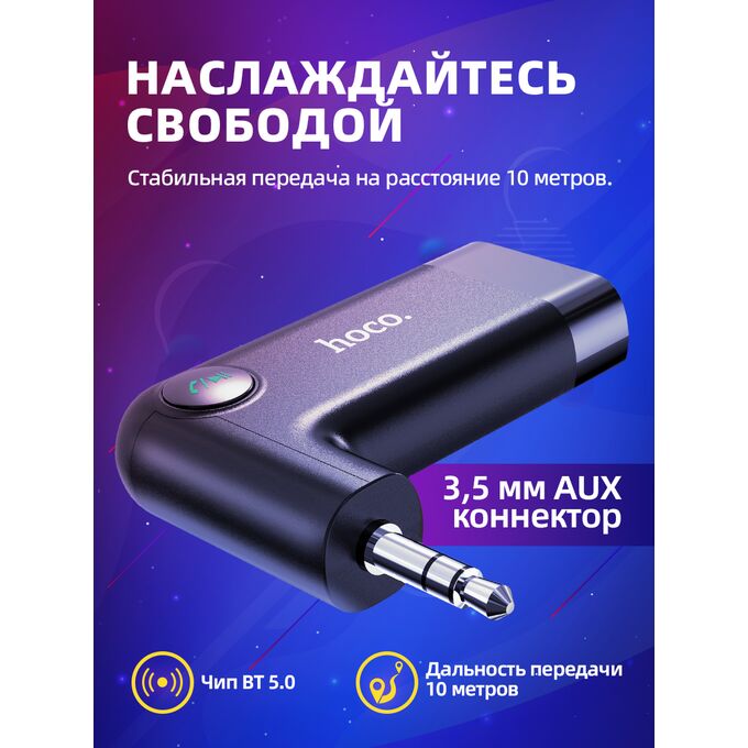 АЗУ Bluetooth FM-Трансмиттер HOCO E53 Dawn sound AUX адаптер