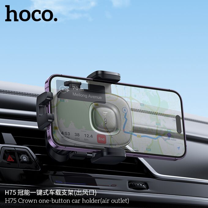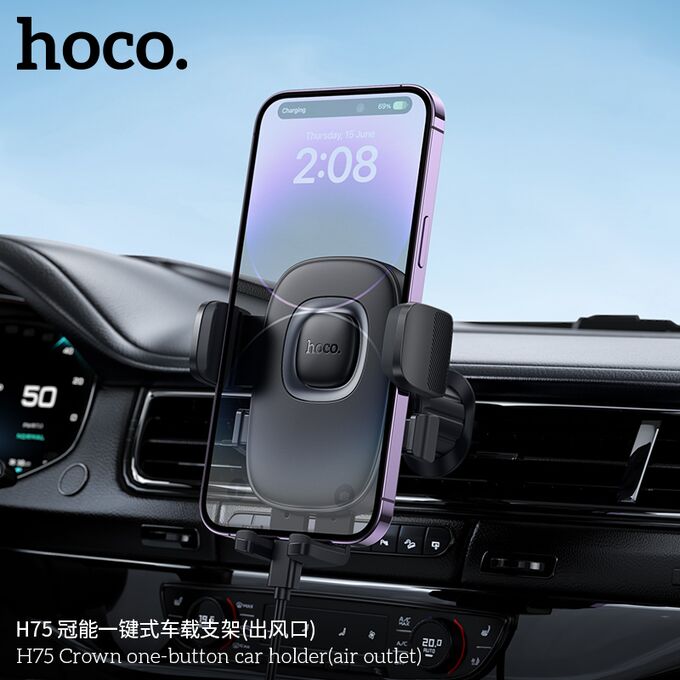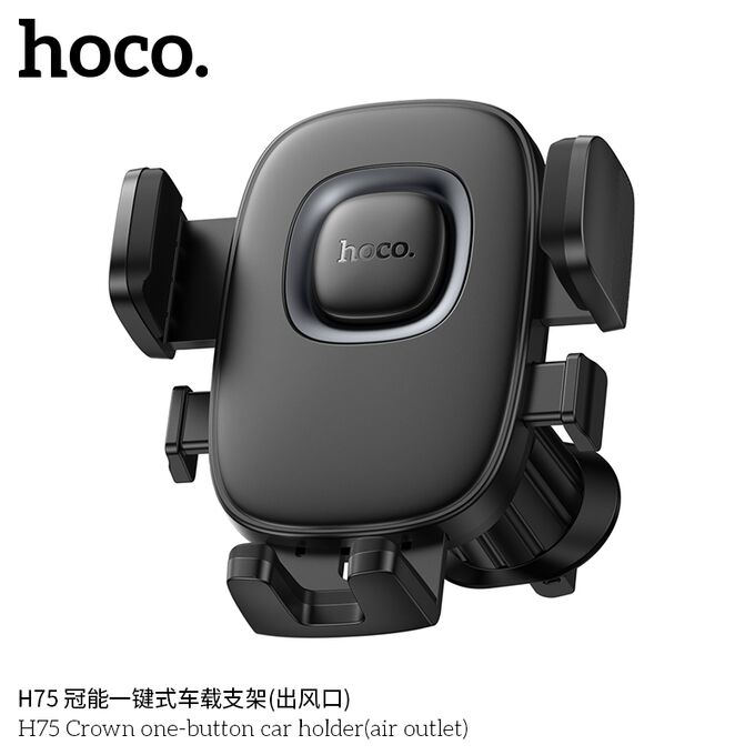 Автомобильный держатель HOCO H75 Crown one-button car holder(air outlet) (черный металлик серый)