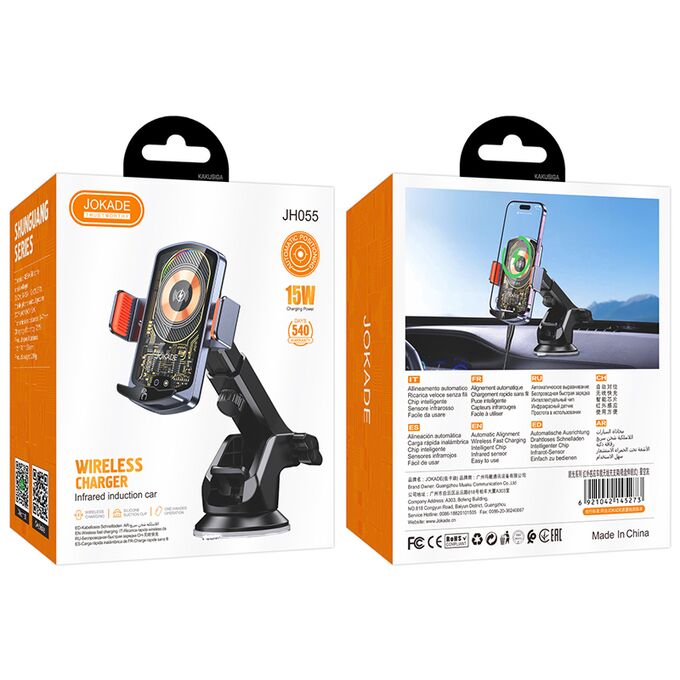 Автомобильный держатель с беспроводной зарядкой 15W JOKADE JH055 Gray