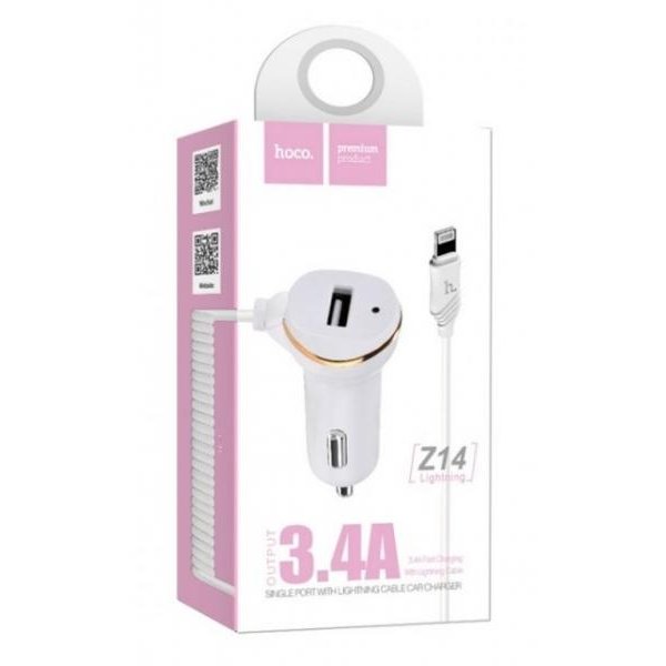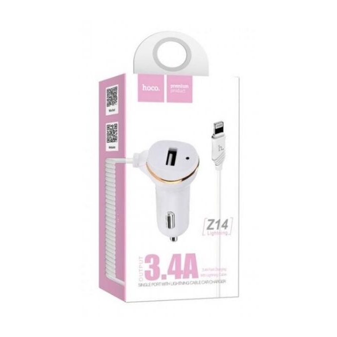 АЗУ 1USB 3.4A для Lightning 8-pin Hoco Z14 (White)
