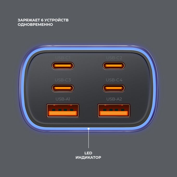 Выходы USB-C1/C2 + USB-C3/USB-A1 + USB-C4/USB-A2: 35Вт + 35Вт + 35Вт