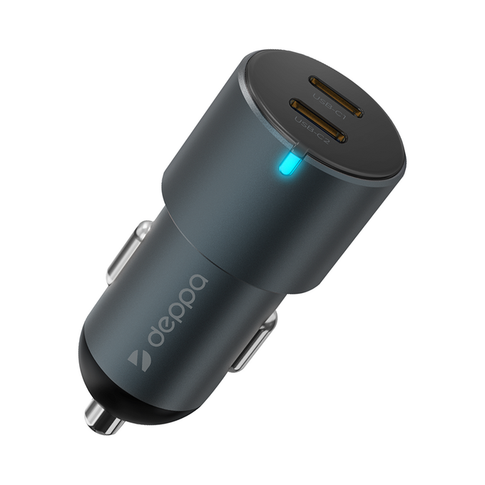 AЗУ 2xUSB-C, PD, 60W, металл, серый, Deppa