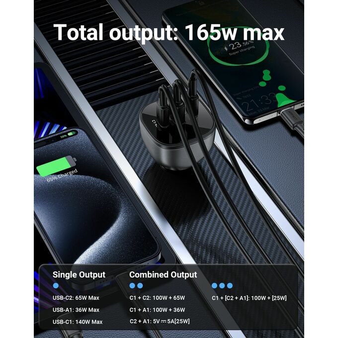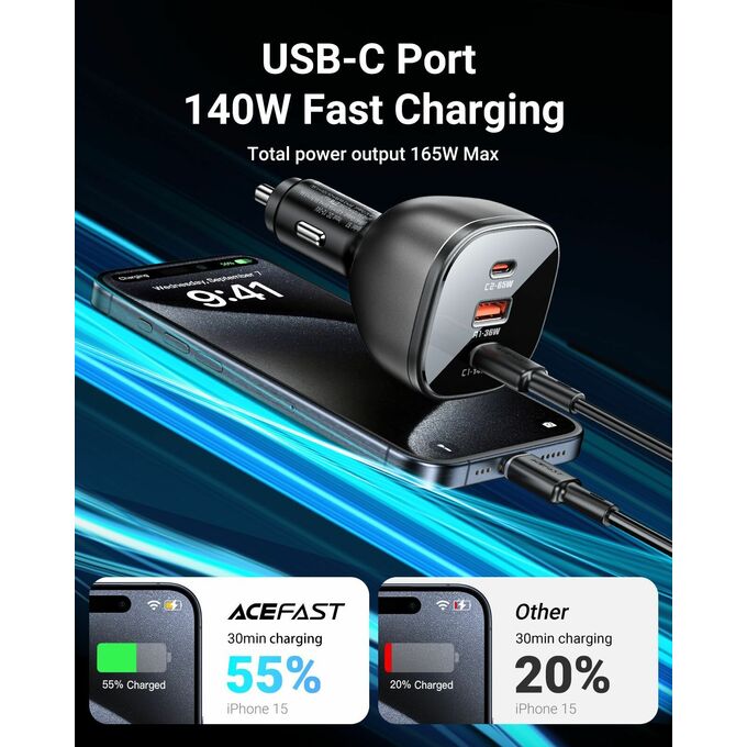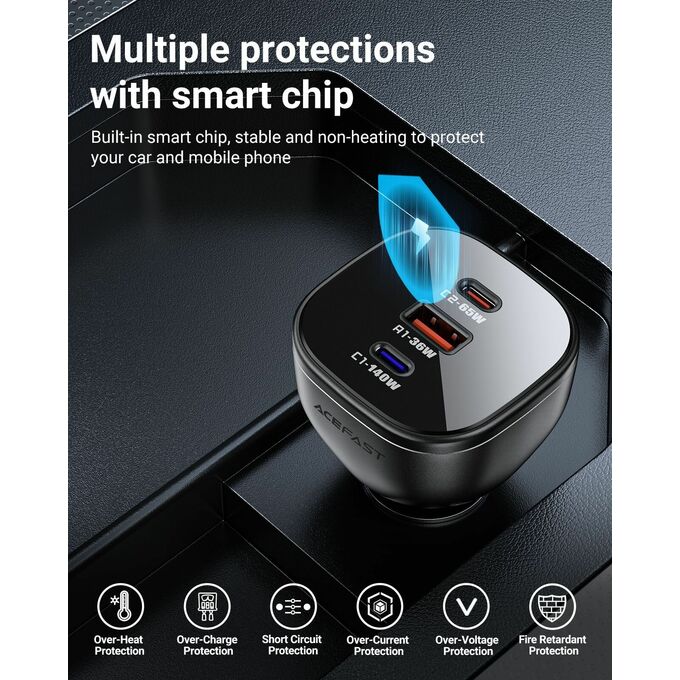 АЗУ ACEFAST B14 165W (2*USB-C+USB-A) 3-port car charger,black