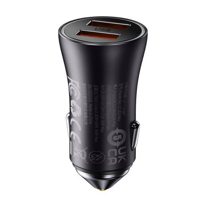 АЗУ Baseus CGJM000013 Golden Contactor Max Dual Fast Charger Car Charger U+U 60W Dark Gray