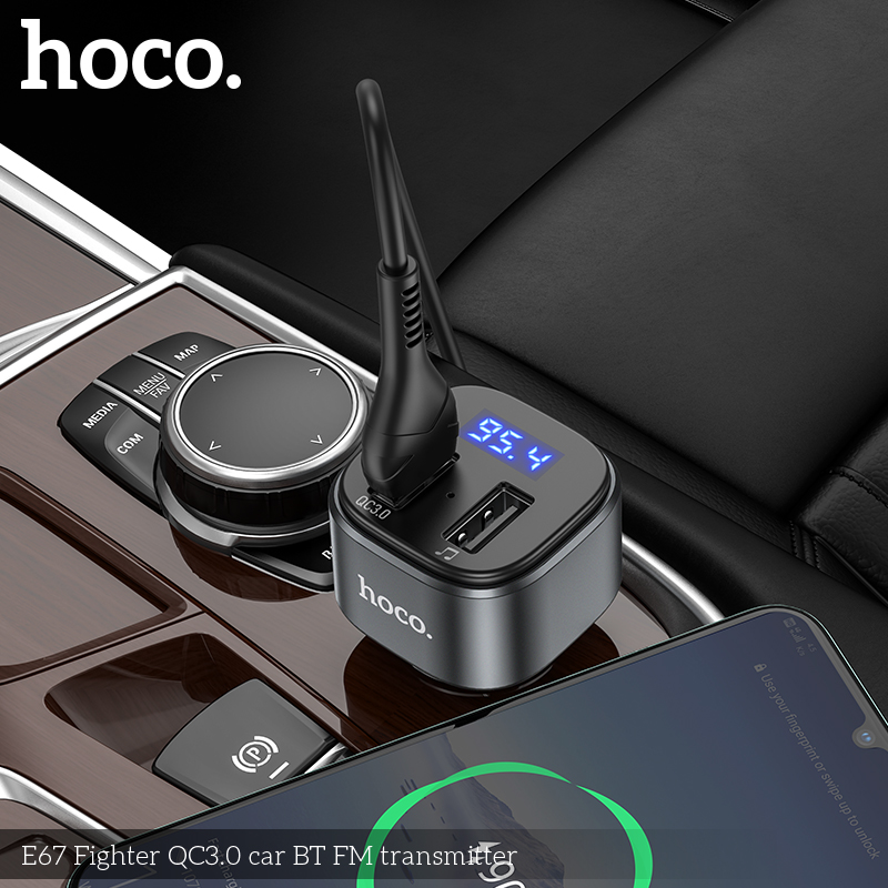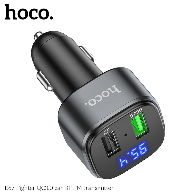 АЗУ Bluetooth FM-Трансмиттер HOCO E67 Fighter QC3.0 car, (черный)
