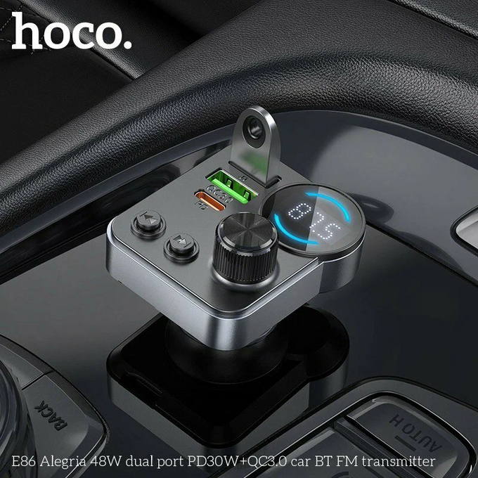 АЗУ Bluetooth FM Трансмиттер HOCO E86 Alegria 48W dual port PD30W+QC3.0 (черный)