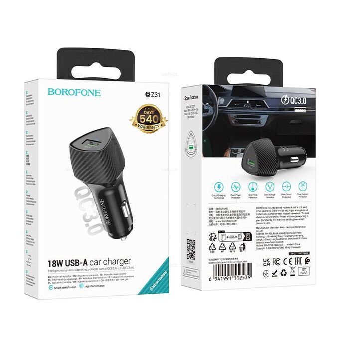 АЗУ BOROFONE BZ31 Solid single-port QC3.0 car charger (черный)