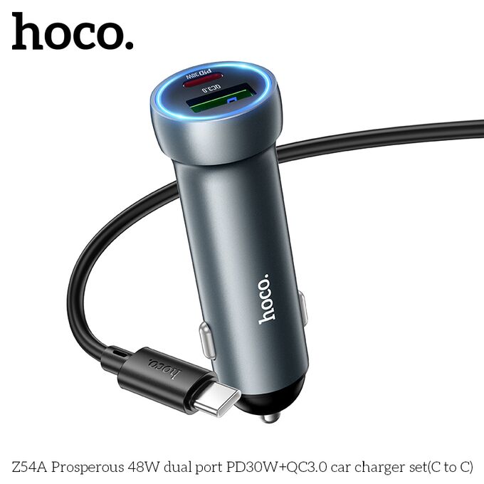 АЗУ HOCO Z54A Prosperous 48W dual port PD30W+QC3.0 + cabel (C to C) (металлически серый)