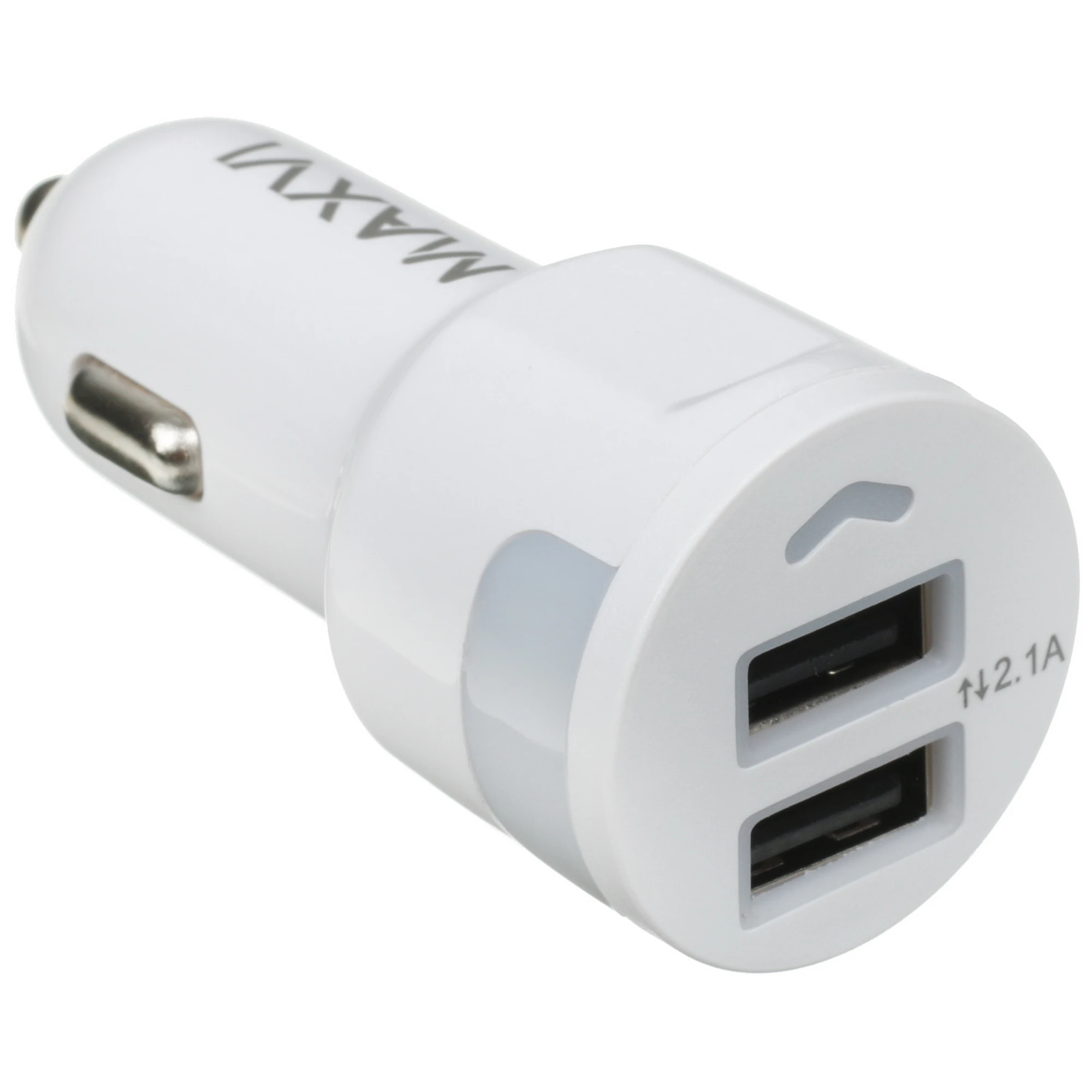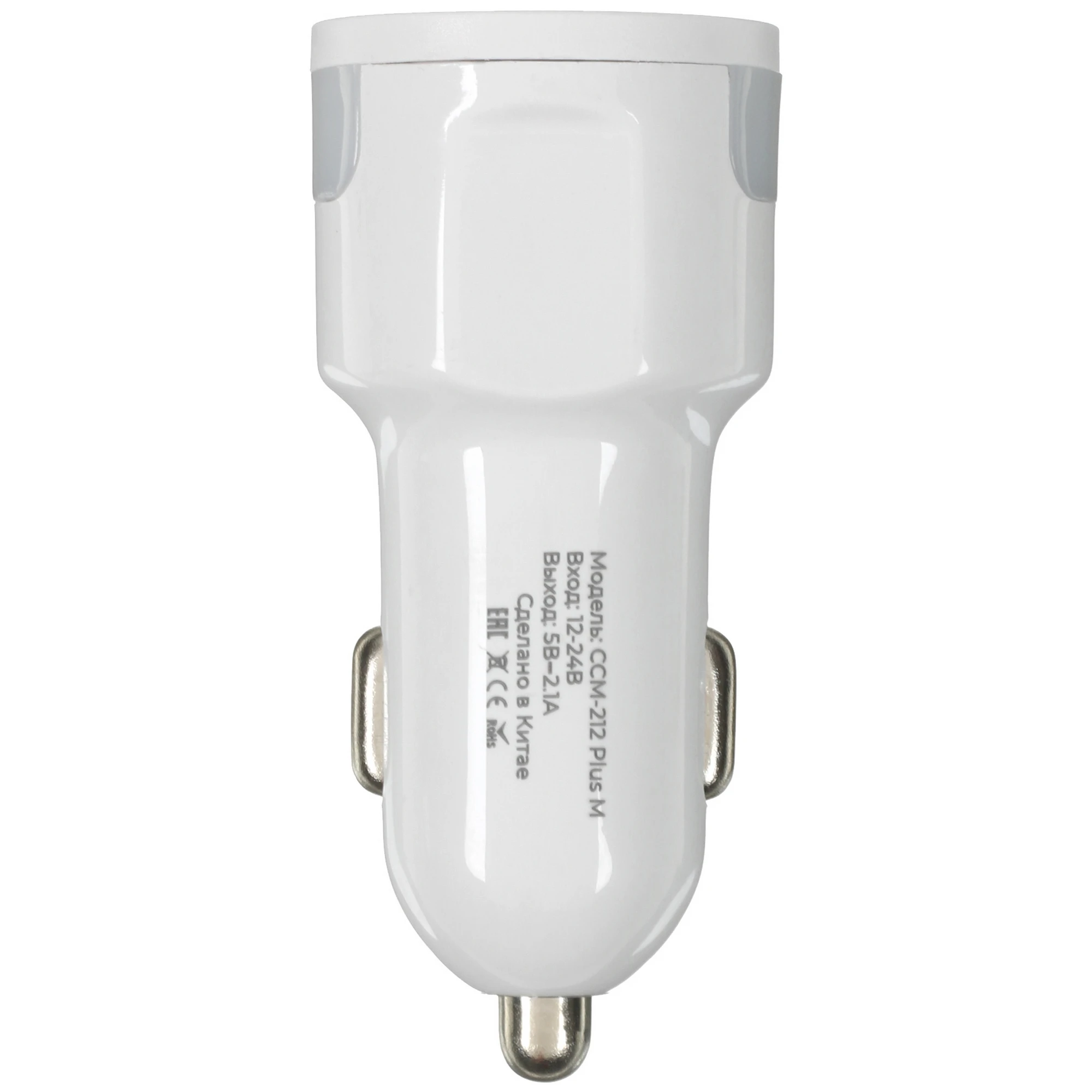 АЗУ Maxvi CCM-212 Plus M white 2.1A, 2xUSB, microUSB подсветка синяя