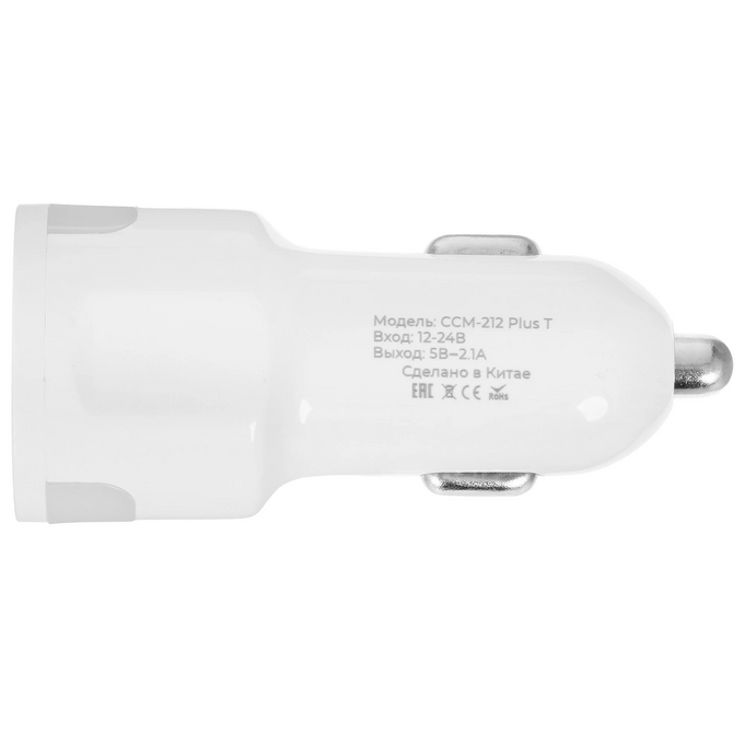 АЗУ Maxvi CCM-212 Plus T white 2.1A, 2xUSB, Type-C подсветка синяя