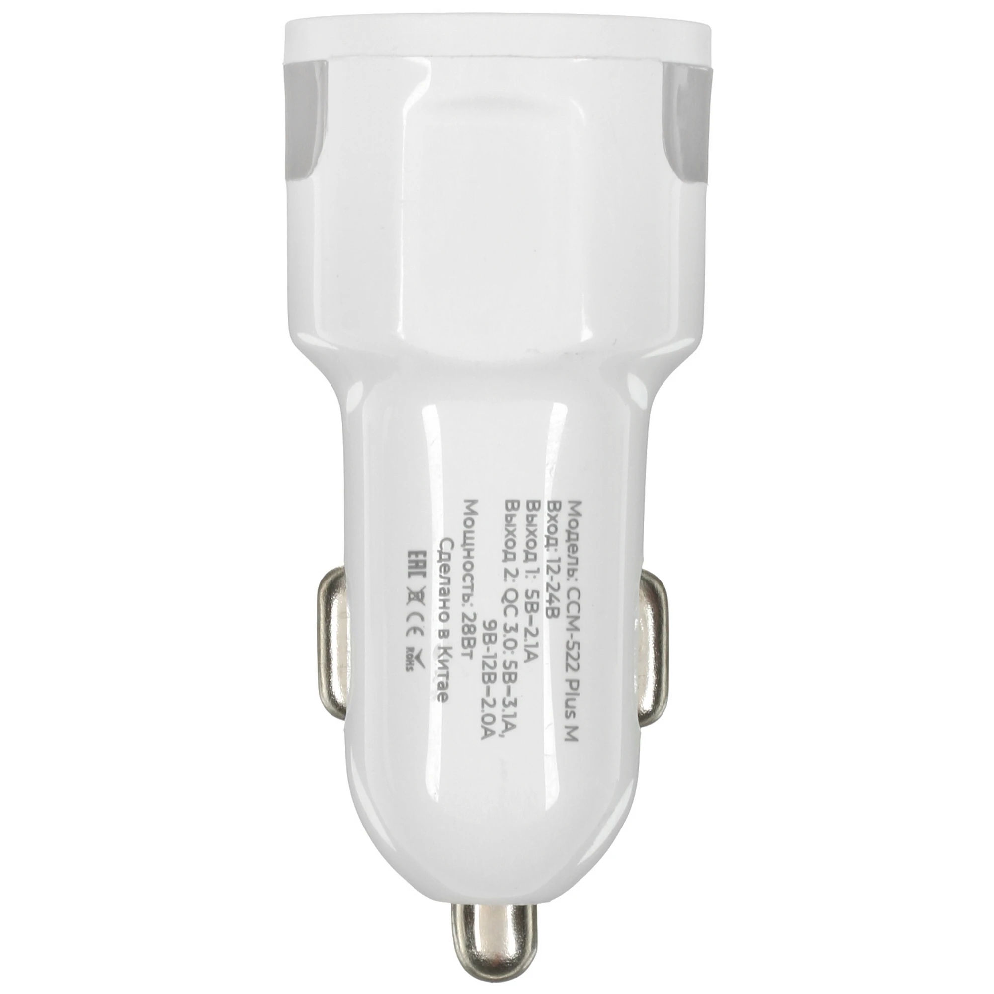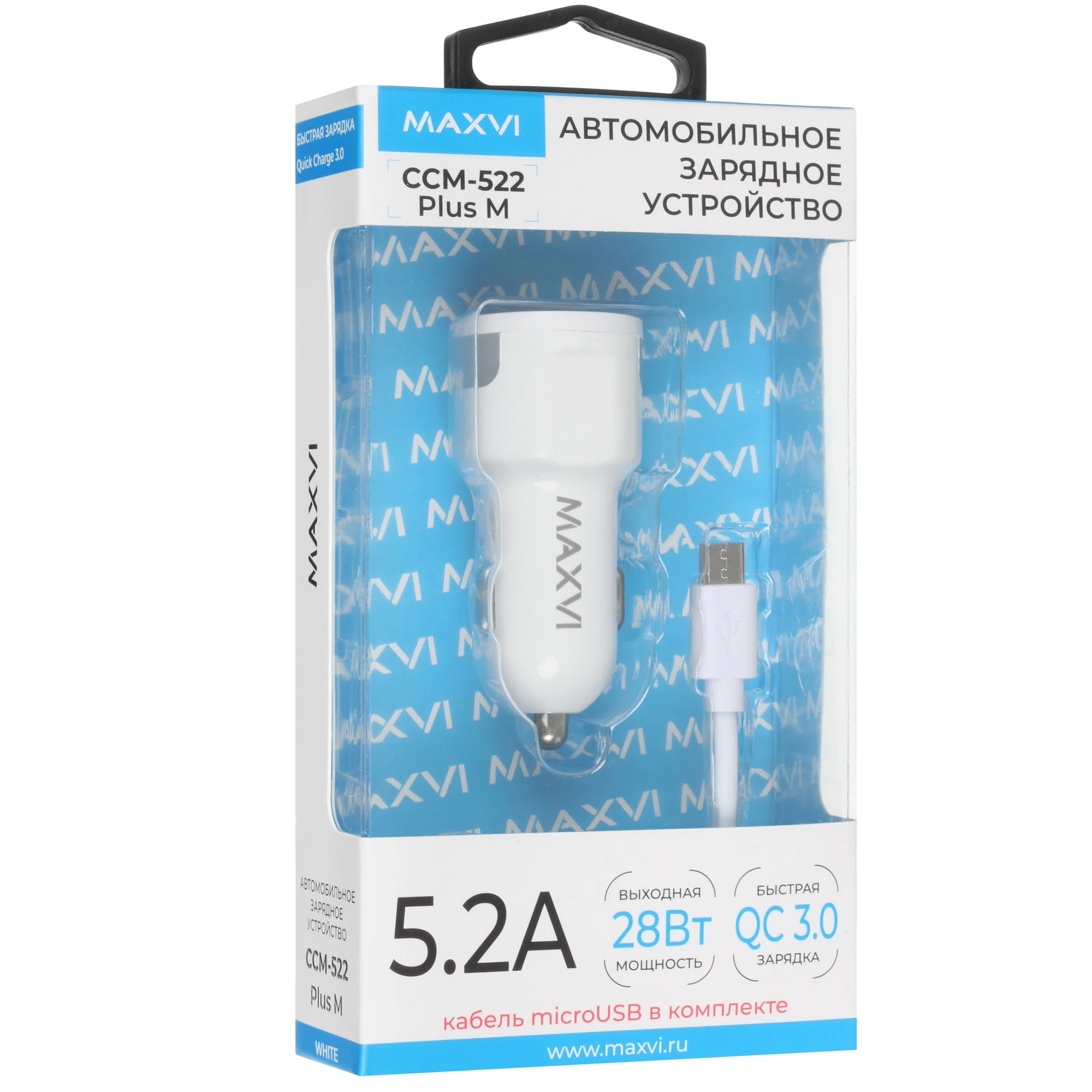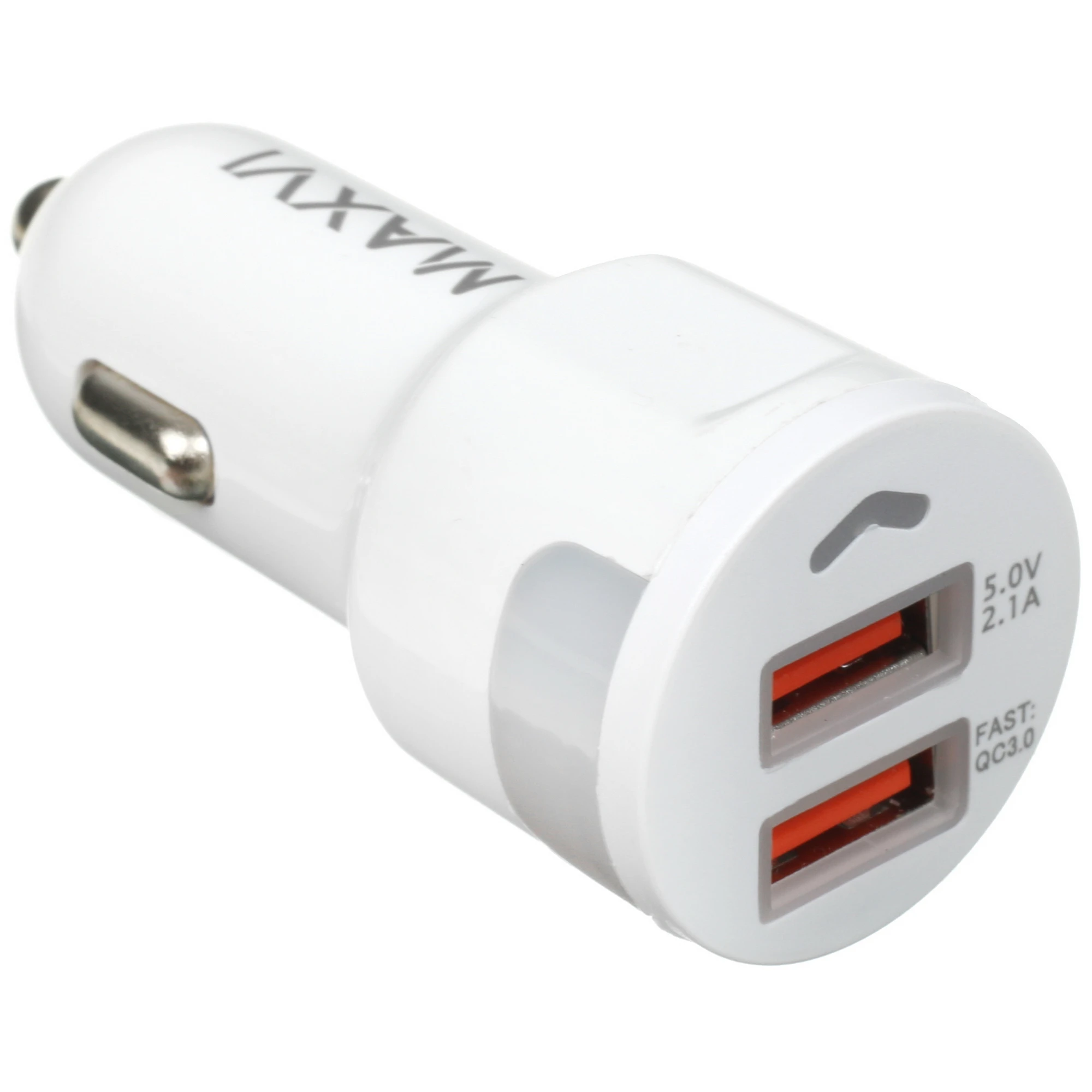 АЗУ Maxvi CCM-522 Plus M white 5.2A, 2xUSB, QC3.0 подсветка синяя