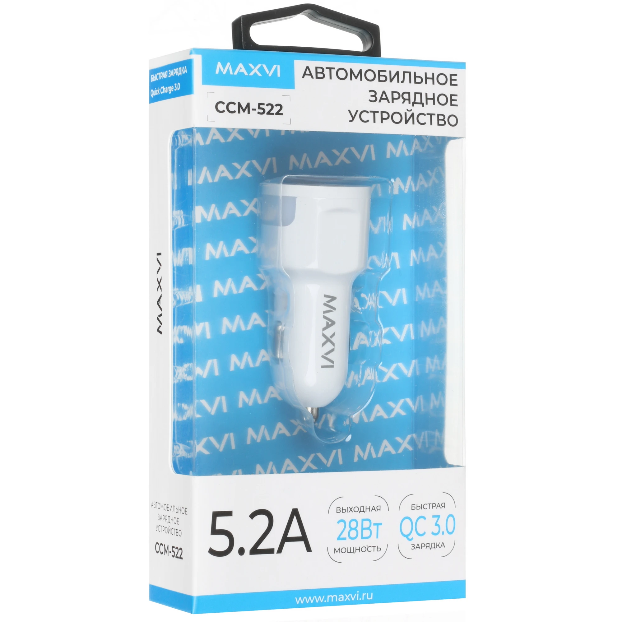 АЗУ Maxvi CCM-522 white 5.2A, 2xUSB, QC3.0 подсветка синяя