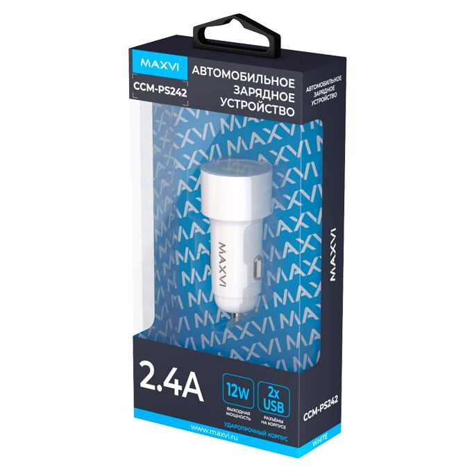 АЗУ Maxvi CCM-PS242 white 2.4A 12W, 2xUSB