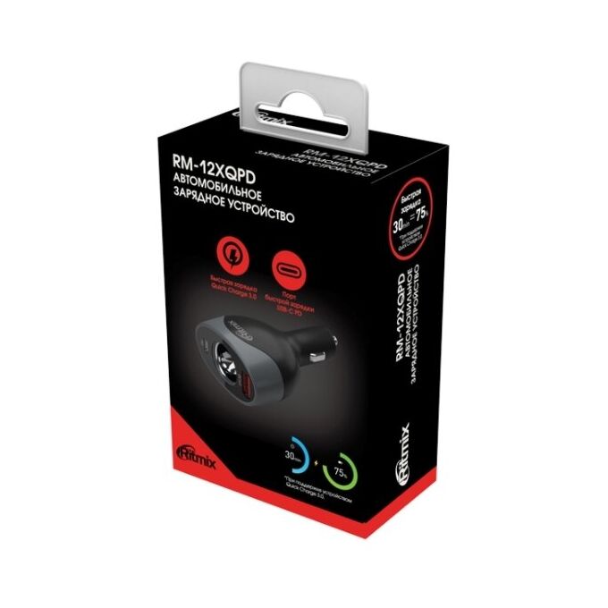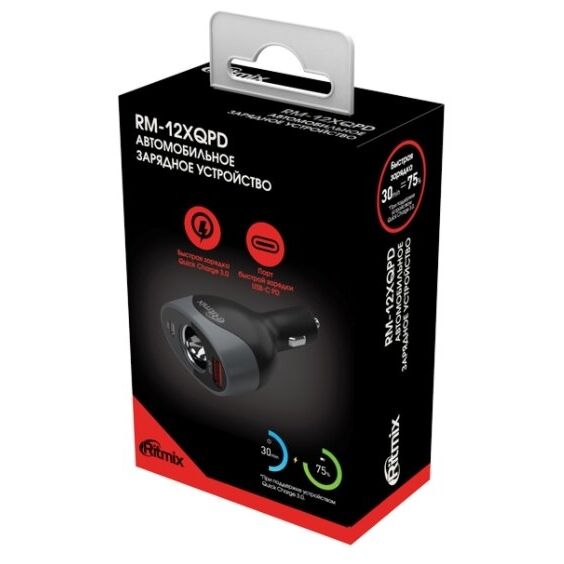 АЗУ RITMIX RM-12XQPD, 1х USB 3.0 QC, 1х Type-C PD, 1х гнездо прикуривателя 7А