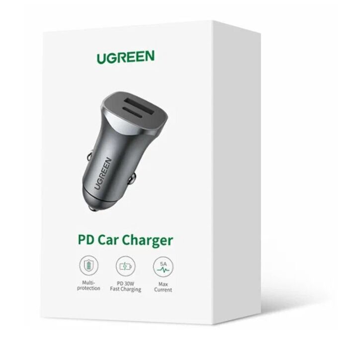 АЗУ Ugreen CD130 (40858) USB-C PD+USB-A QC 30W Fast Car Charger + SCP 22.5W gray