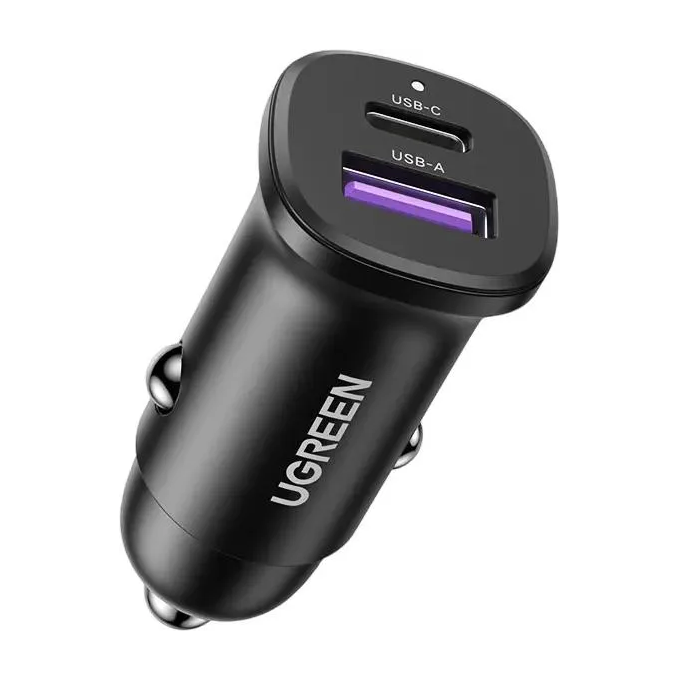 АЗУ UGREEN EC305 (25845) USB-C PD+USB-A QC 30W Fast Car Charger with PC Case Black