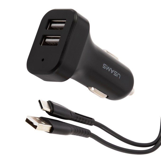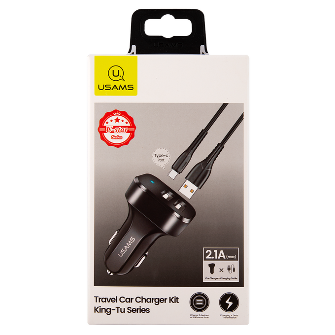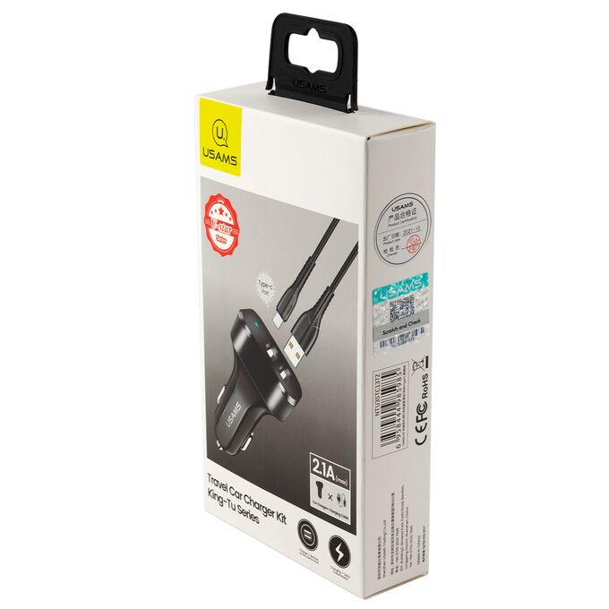 АЗУ USAMS 2USB (USAMS-NT Travel Car Charger Kit King Tu Series) +кабель Type-C U35, черный (NTU35TC13TZ)