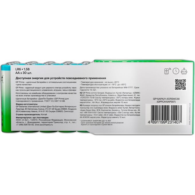 Батарея GP 15A-B30 AA, 1.5V, 30шт