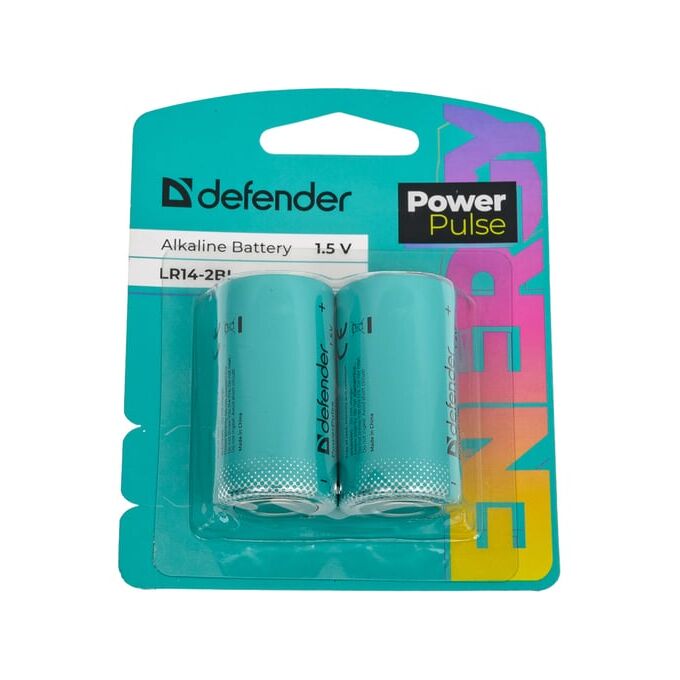 Батарейка алкалиновая DEFENDER LR14-2BL С, блистер, PowerPulse