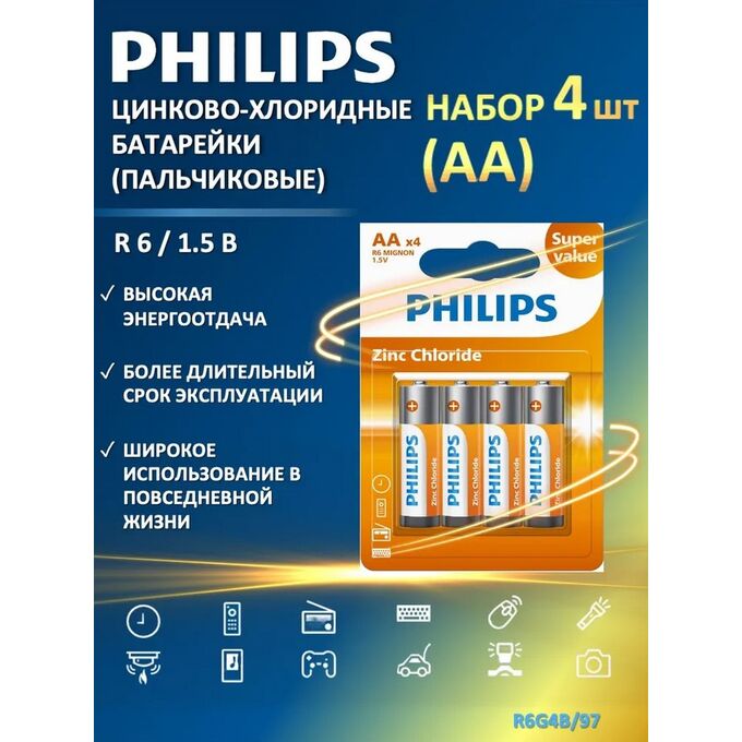 Элементы питания Philips предназначены для применения в качестве источника питания в различных устройствах с высоким энергопотреблением: игрушки, плееры, фонари, фотоаппараты, пульты дистанционного управления и т.д.