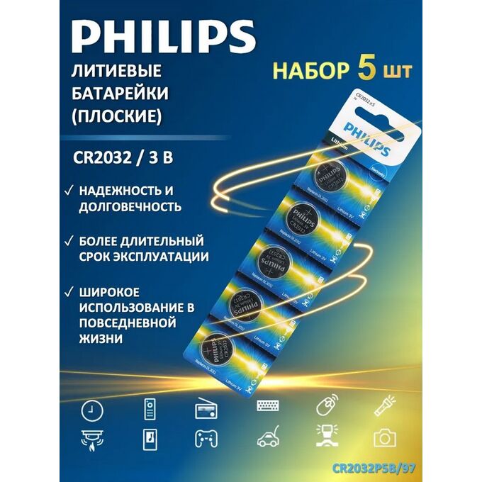 Батарейка плоская CR2032 литиевая 5 в блистере
