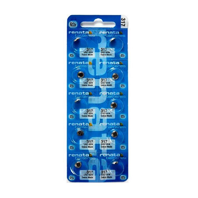 Батарейки Renata 317 SR516SW Alkaline — 10 шт. на блистере, 1.5V