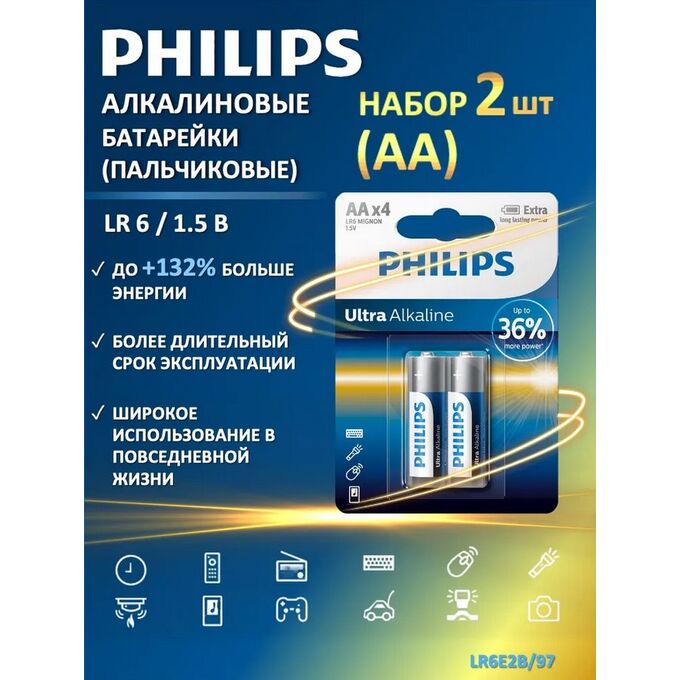 Батарейка Ultra Alkaline щелочная 2АA в блистере