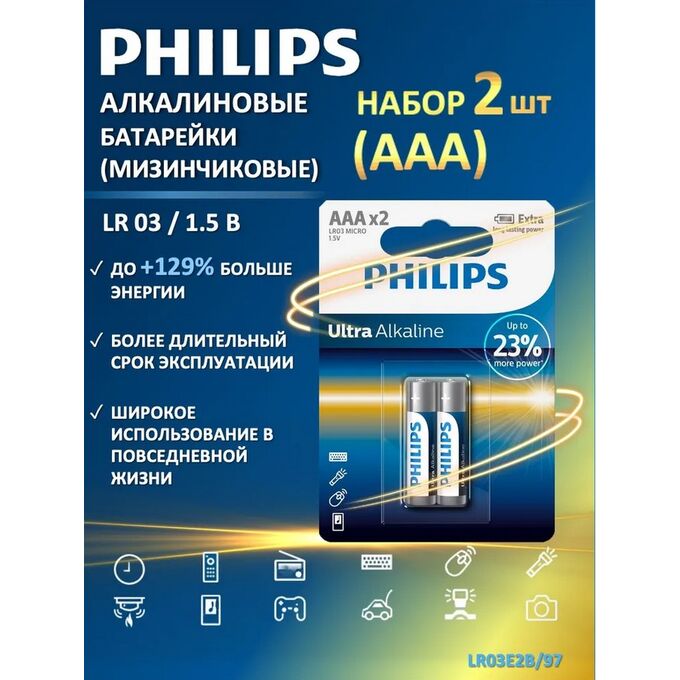 Батарейка Ultra Alkaline щелочная 2АAA в блистере