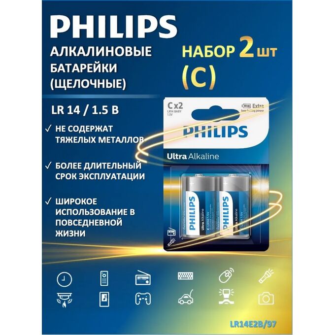 Батарейка Ultra Alkaline щелочная 2C в блистере