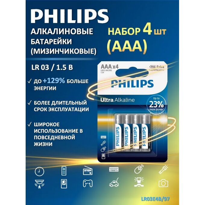 Батарейка Ultra Alkaline щелочная 4АAA в блистере