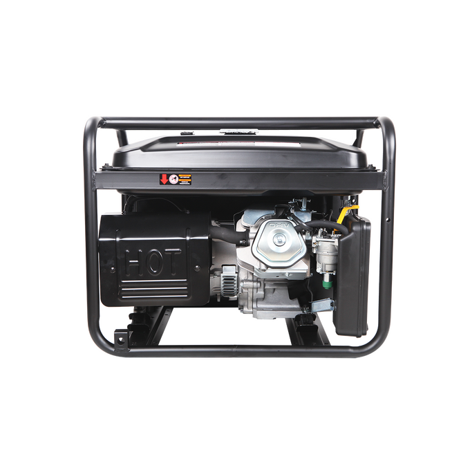 Генератор также оснащен автоматами защиты от перегрузки и снижения уровня масла, а также мощной рамой для защиты от внешних повреждений.