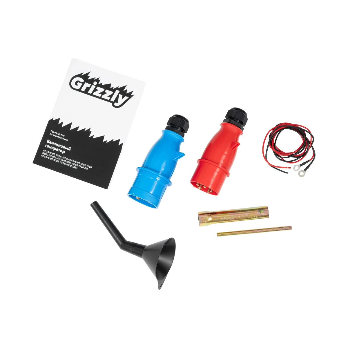 Бензиновый генератор Grizzly Dual Power GEGG-8500-3DEA предназначен для автономного электроснабжения. В комплект входят сам генератор, свечной ключ, колеса, ручки, комплект вилок, руководство по эксплуатации.