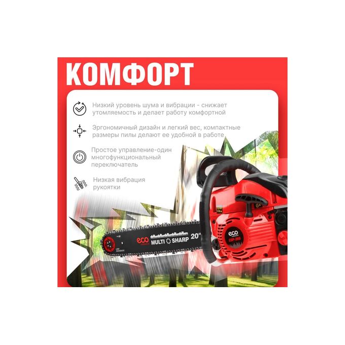 -Эргономичный дизайн и легкий вес пилы делают ее удобной в работе;