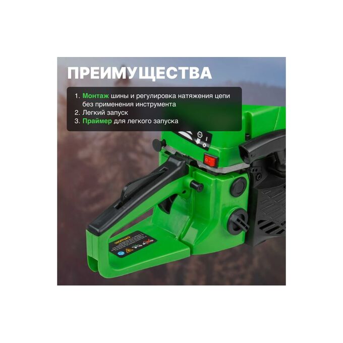 Бензопила DGM GS-232 - незаменимый помощник в распиловки древесины на дачном или загородном участке. Тормоз пильной цепи останавливает её вращение в случае отскока или при нажатии на защитный щиток - это снижает вероятность травмы во время работы. Крепкий хват. Обрезиненная дополнительная рукоятка препятствует скольжению руки и обеспечивает надежное удержание агрегата при работе. Бак объемом 550 мл обеспечивает продолжительную работу без дозаправки.