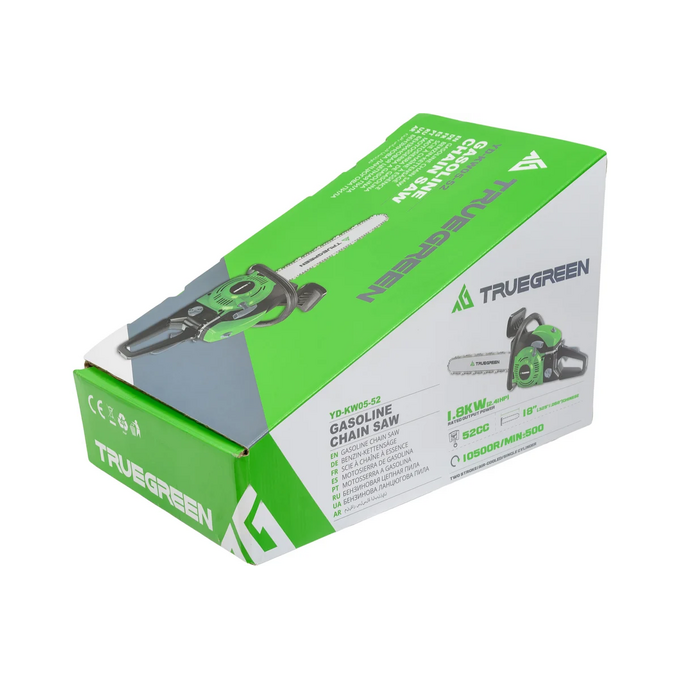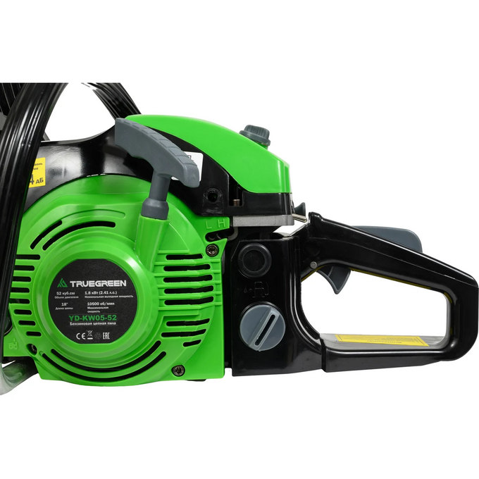 Бензопила TRUEGREEN YD-KW05-52 представляет собой надежный инструмент, обеспечивающий эффективную работу благодаря мощности двигателя в 1.8 кВт.