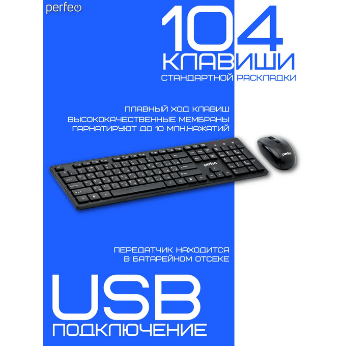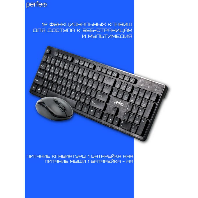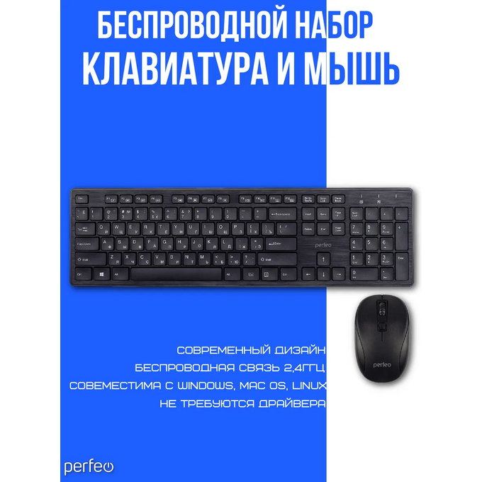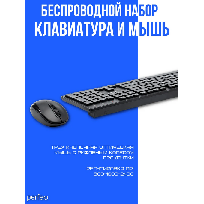 Беспроводной набор клавиатура + оптическая мышь Perfeo "TWIN": USB, (Арт. PF_A4500)