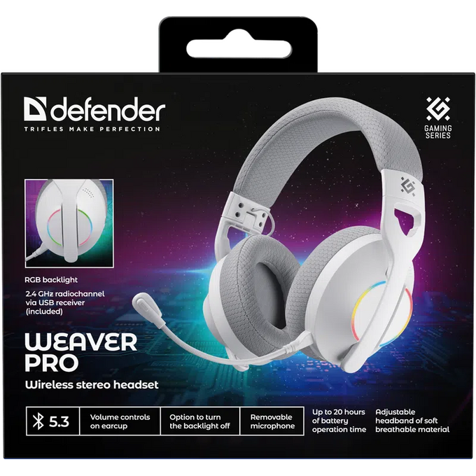 Беспроводная гарнитура DEFENDER Weaver Pro BT/2.4G, белый 62550