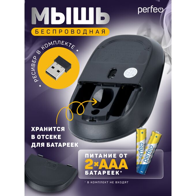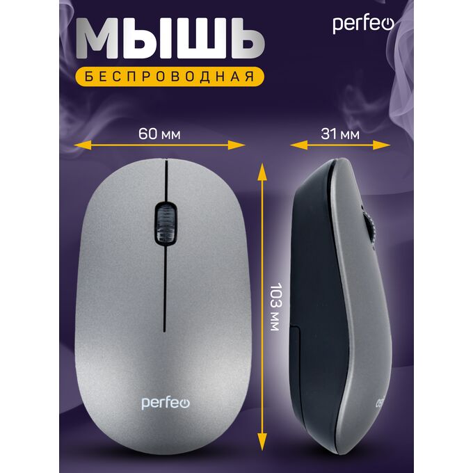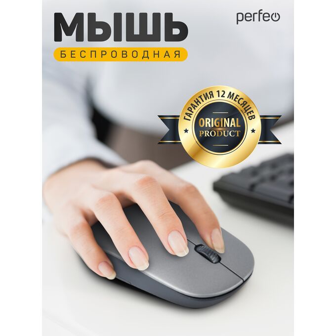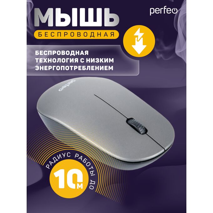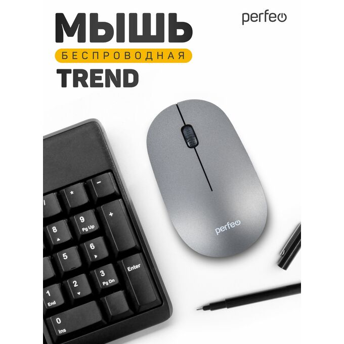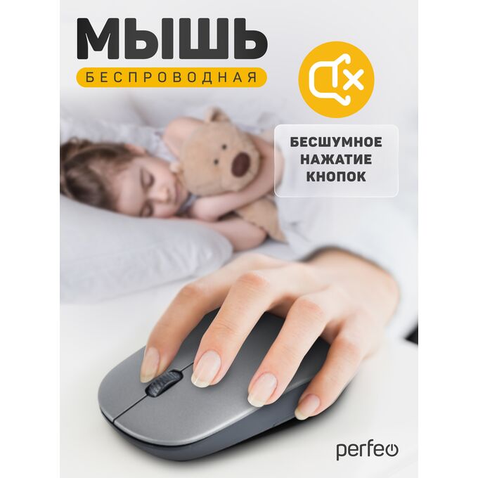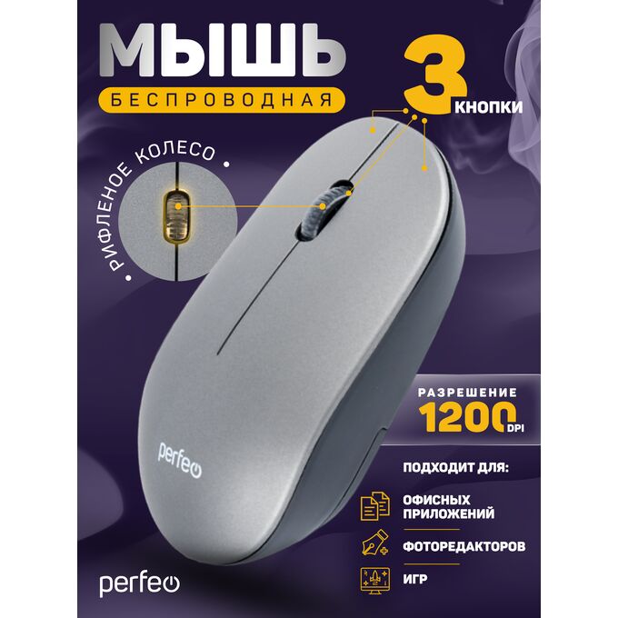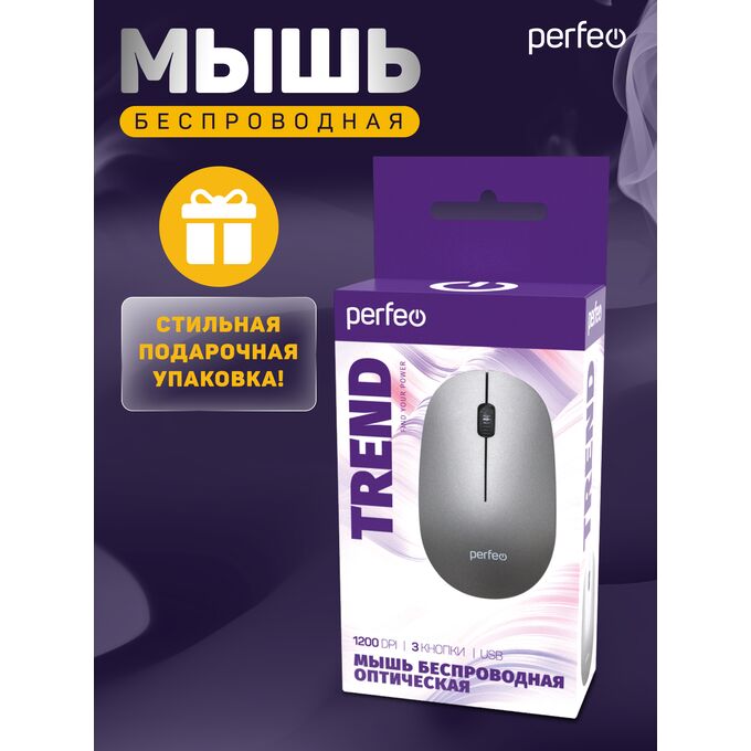 Беспроводная мышь Perfeo, оптич. "TREND", 3 кн, DPI 1200, USB, серебро, (Арт. PF_B4906)