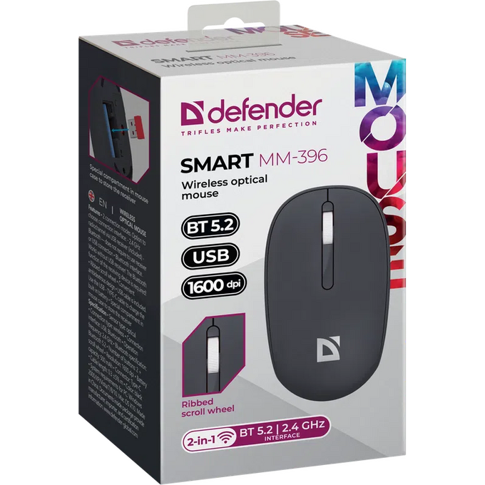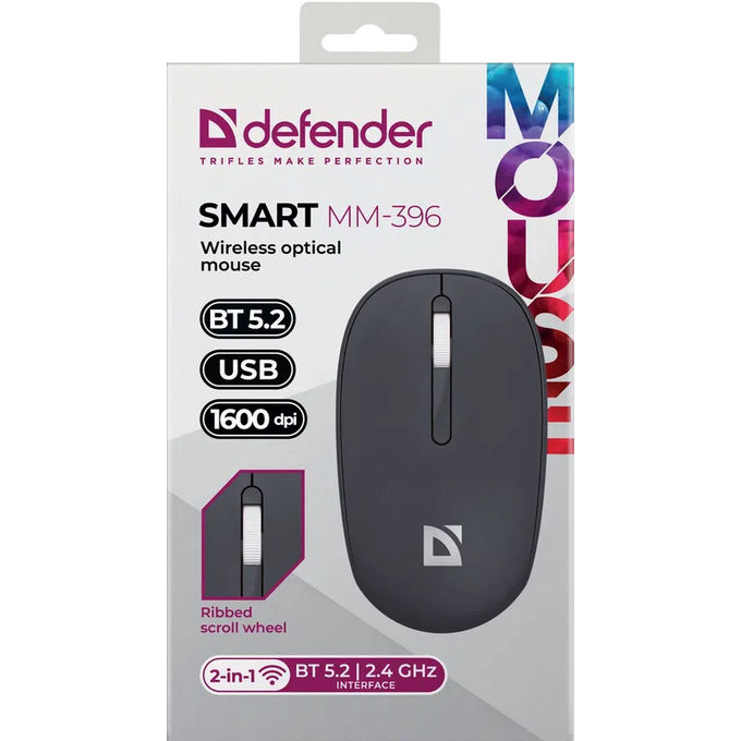 Мышь беспроводная оптическая DEFENDER Smart MM-396 (52396) черный