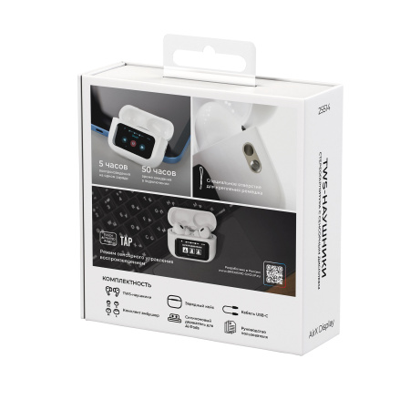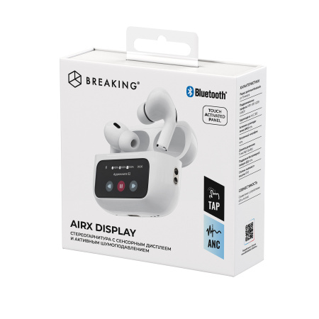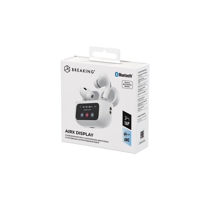 Беспроводная стереогарнитура TWS Breaking BT-07 AirX Display, ANC, LED, Bluetooth 5.4 (Белый)