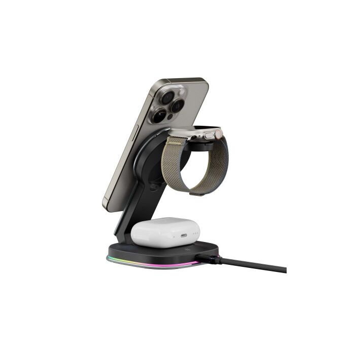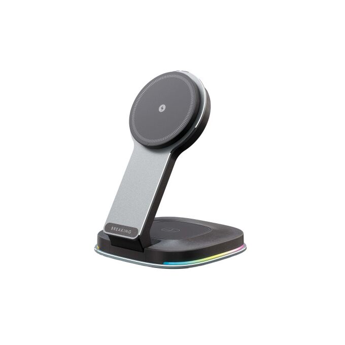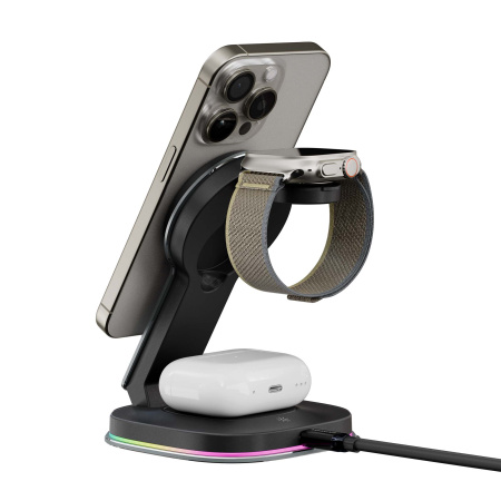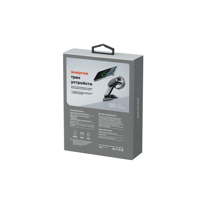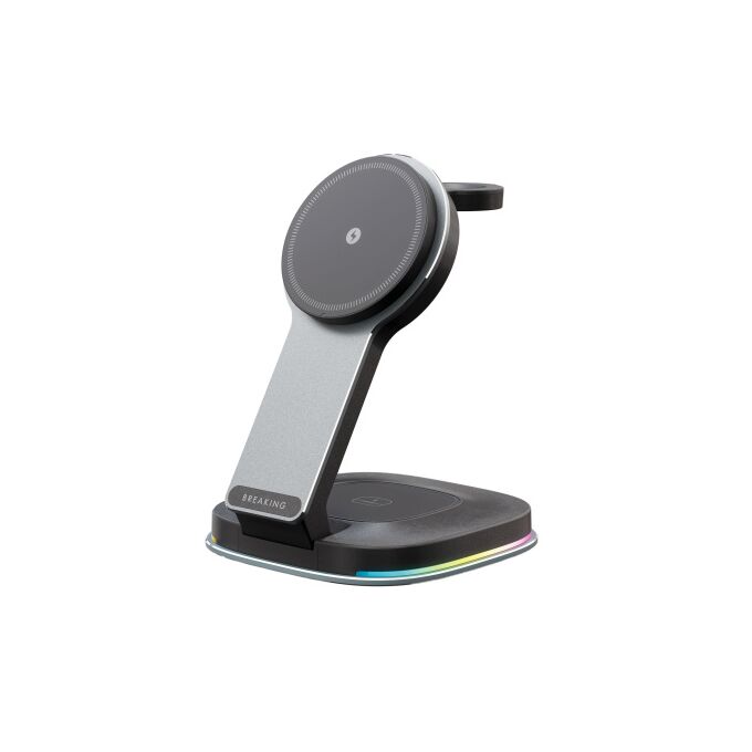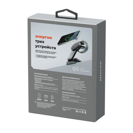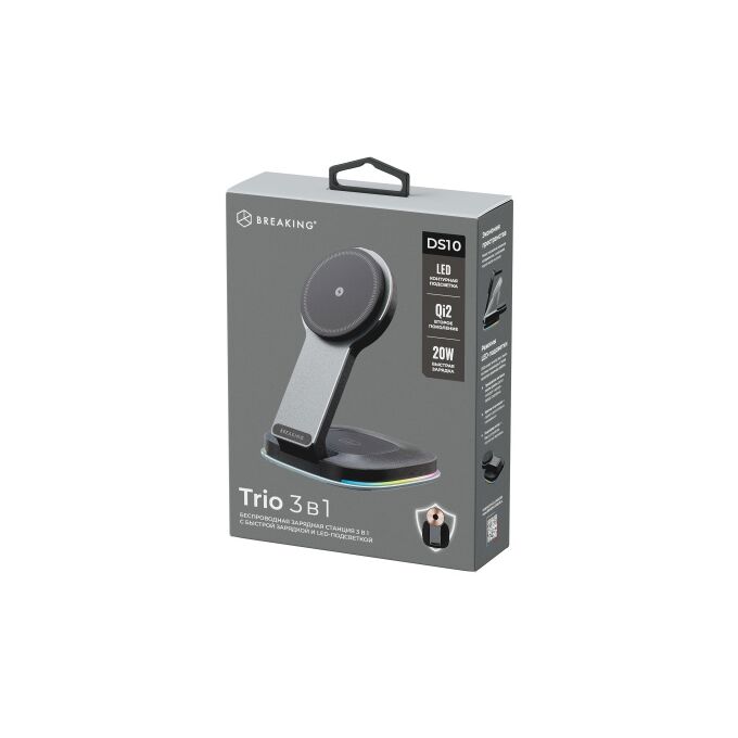 Беспроводная зарядная станция 3 в 1 Breaking DS10 Trio, Qi2 20W, LED (Графит)
