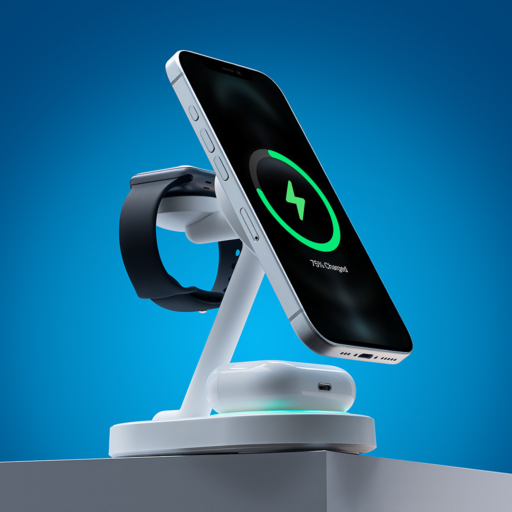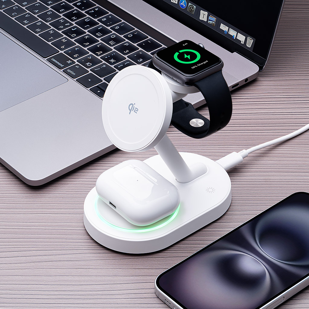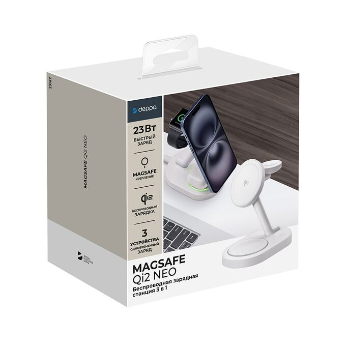 Беспроводная зарядная станция 3 в 1 MagSafe QI2 NEO, белый, Deppa