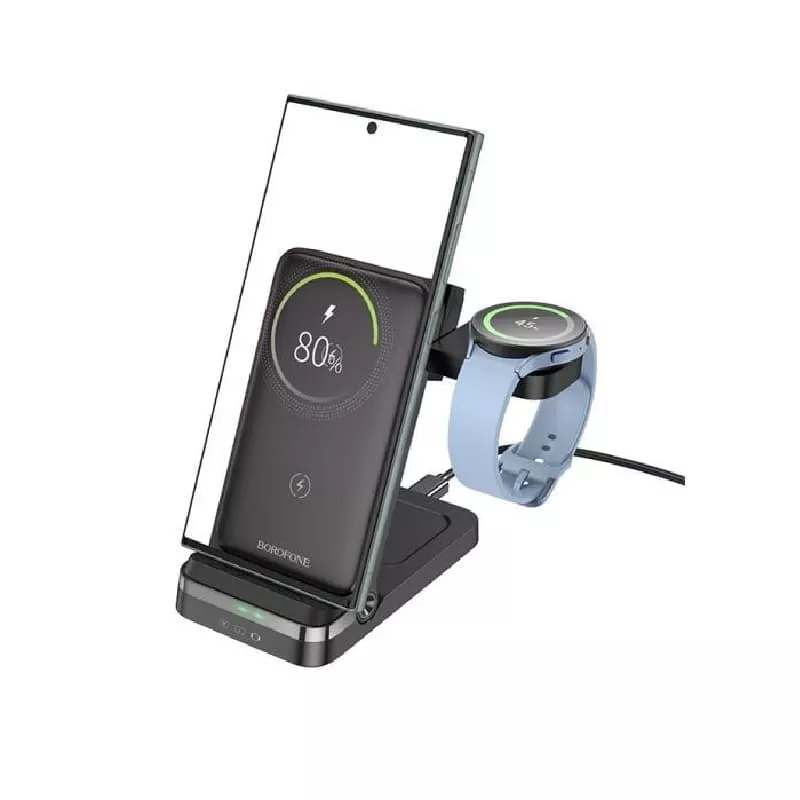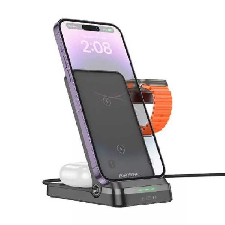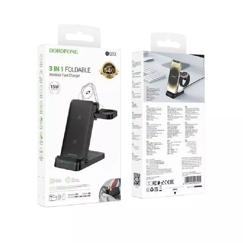 Беспроводное ЗУ BOROFONE BQ33 Clever folding 3-in-1 vertical wireless fast charger (черный)