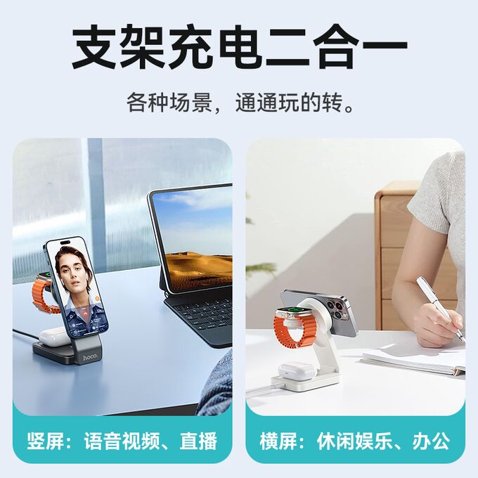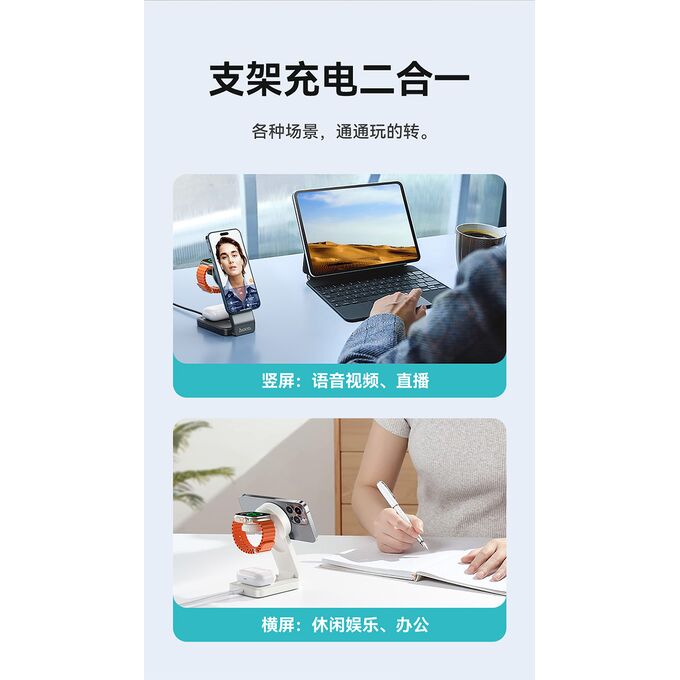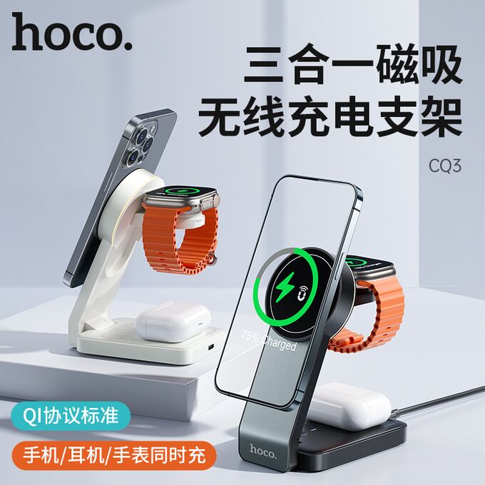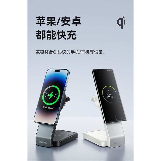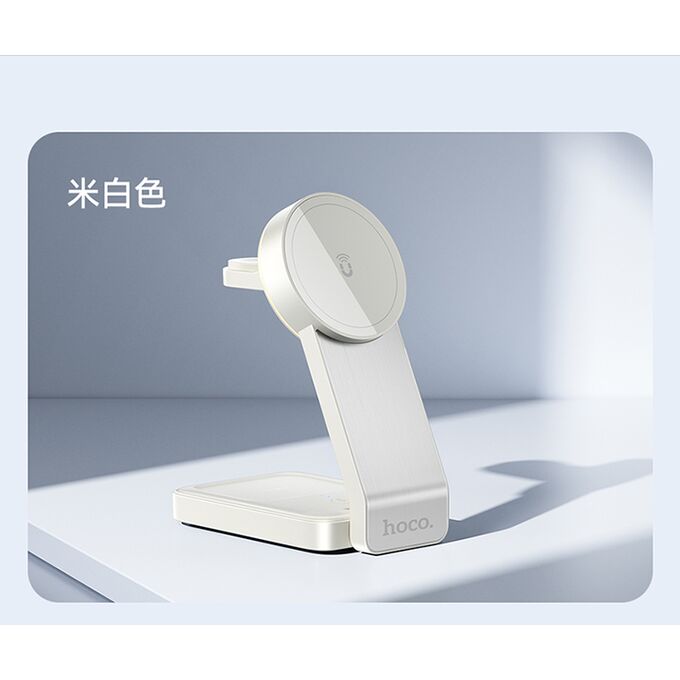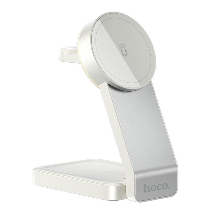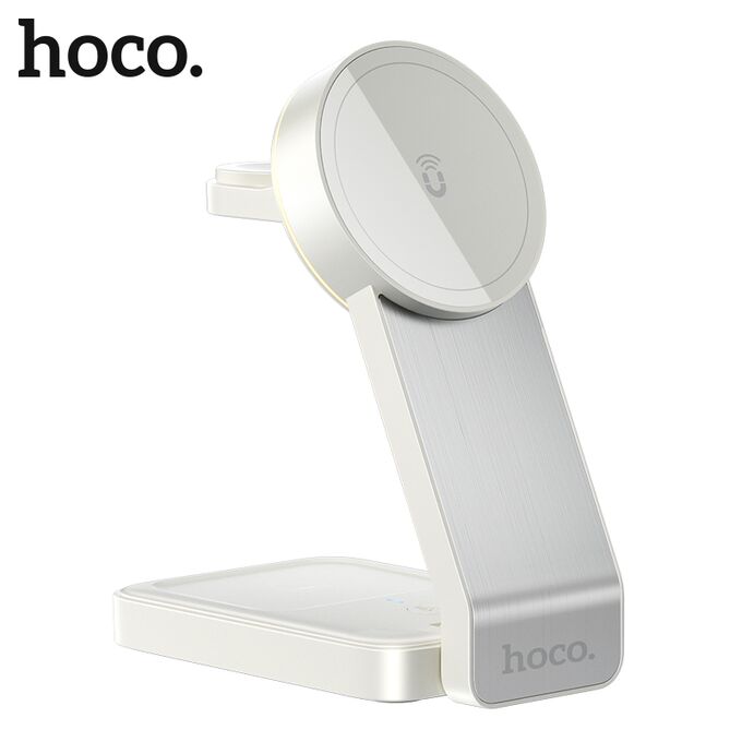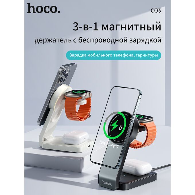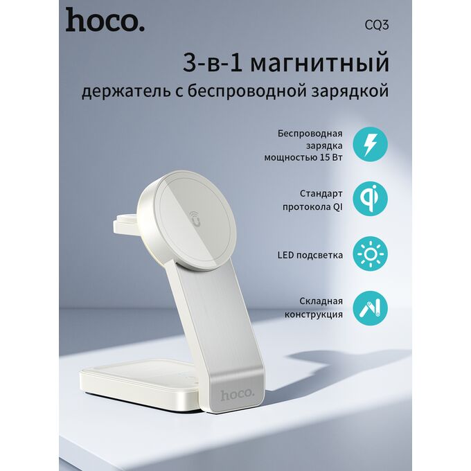 Беспроводное ЗУ HOCO CQ3 Motorcycle folding 3-in-1 magnetic wireless fast charger (белый)