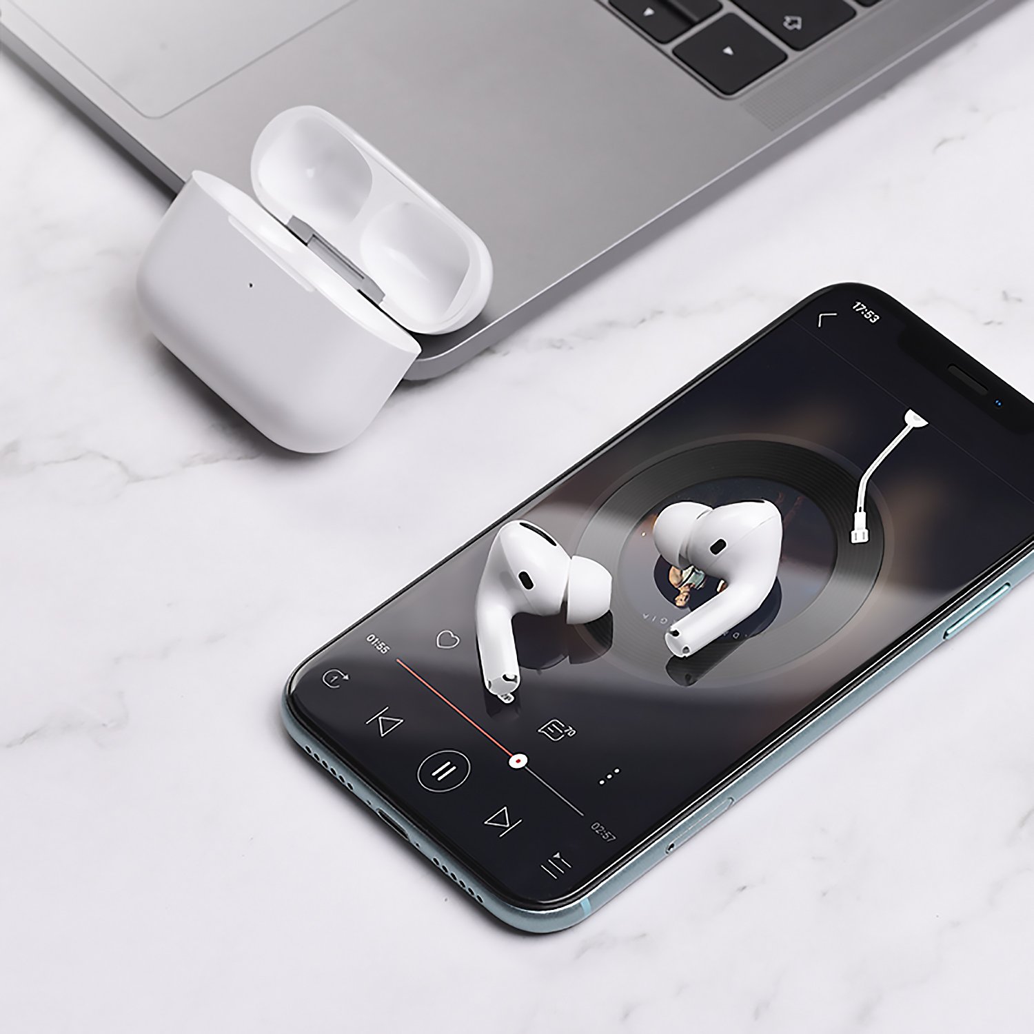 5. Функция активного шумоподавления ANC, всплывающее окно с открытой крышкой Apple, сенсорное управление (на ручке), зарядка поддерживает беспроводную зарядку.