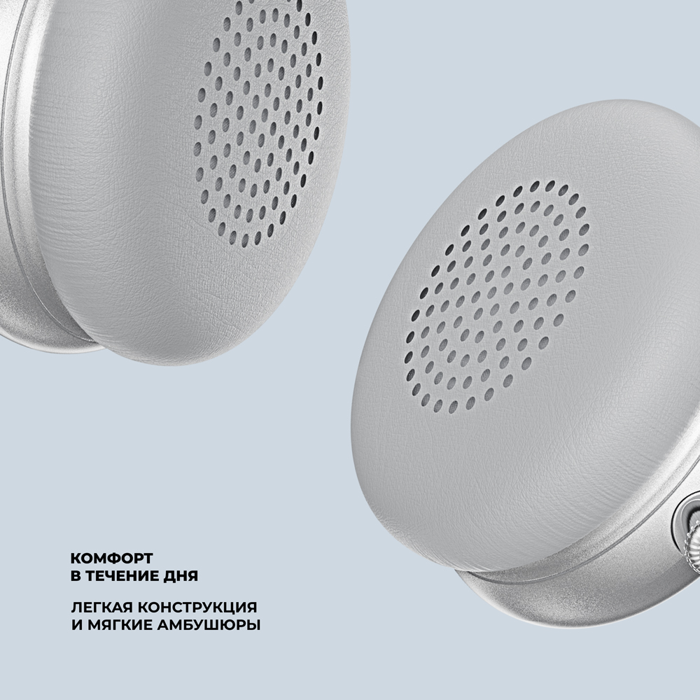 Беспроводные накладные наушники Stereo Light, BT 5.4, 300 мАч, cеребристый, Deppa
